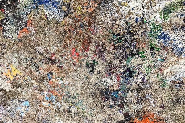 "Many layers of color and form on a graffiti wall resulting in a new abstract image."