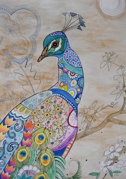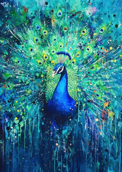 Art Print "Påfugl familie" af Ray Faye. Tilgængelig i forskellige størrelser som plakat eller indrammet fine art print. Sammenkoblet med en ramme får dette kunstværk virkelig lov til at skille sig ud i din egen personlige kunstgalleri!