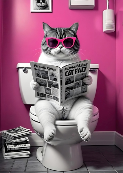 "In this work I wanted to capture the humorous moment of everyday life that is often overlooked. The cat, sitting relaxed on the toilet and reading the newspaper, represents a mixture of nonchalant elegance and a certain informality."
