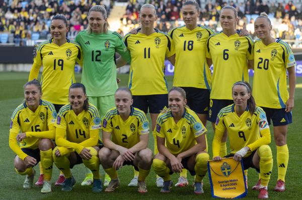 "Det svenske fodboldlandshold" poster af Per Ljung. Et øjeblik fanget lige før kampstart – det svenske kvindelandshold står samlet, klar til kamp i de ikoniske gule trøjer, der næsten lyser op mod stadionets grå tribuner. Hver spiller udstråler en blanding af ro og rå energi – som om de lige nu tæller sekunderne til første fløjt. Det er ikke bare sport, det er holdånd, dedikation og en knivskarp vilje pakket ind i klassisk svensk design. Gamla Ullevi vibes og Nations League-stemning på sit ypperste.