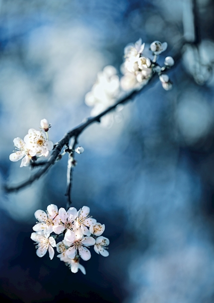 "Forår" poster af Petra Vasseur. Et blomstrende pæretræ i en lun forårsaften.