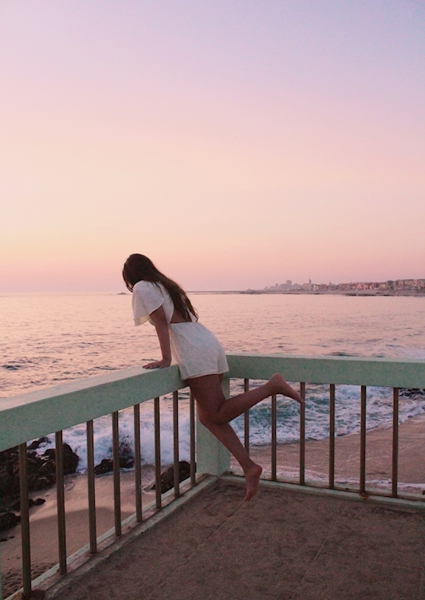 "Om sommeren " poster af Zé Ninguém. En stille stund fanget i pastel – himlen og havet smelter sammen i varme rosa og kølige blå toner. Figuren, der læner sig ud over rækværket, er som en drøm, der svæver mellem nærvær og længsel. Det er sommerens essens i Portugal, hvor tiden står stille, og tankerne får lov at flyve frit. Perfekt til dig, der vil have en bid af kystens ro og en pause fra hverdagens larm. Men altså… hvem har ikke brug for det?