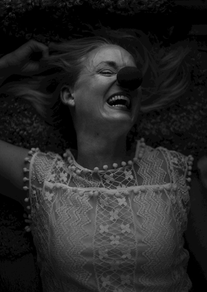 "Petra" poster af Birgitta Trollhag. Glad klovn med et såret hjerte.