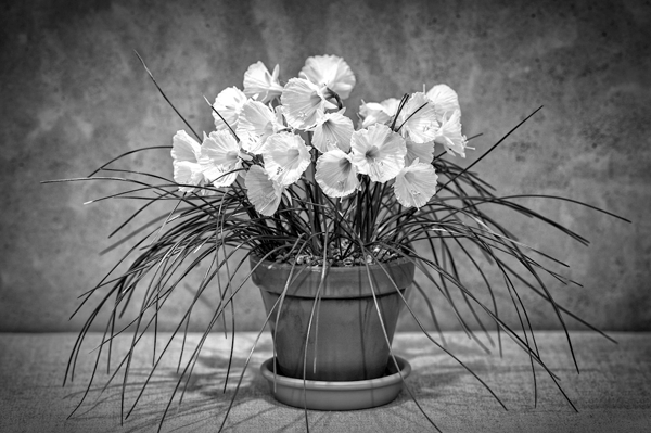 "Petticoat Daffodil in a flowerpot."