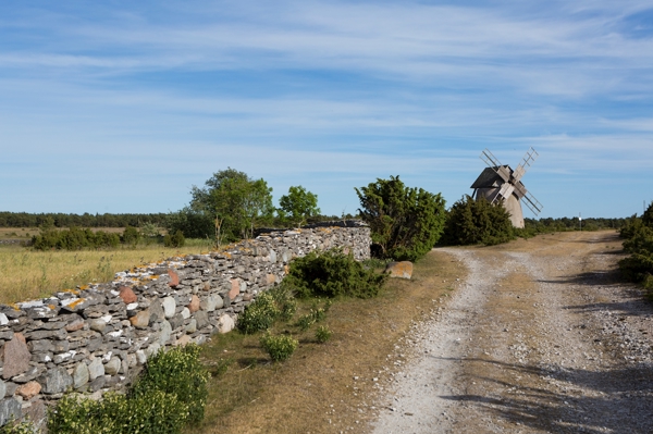 " Typical countryside of Faro, close to Gotland with old wind mills and stone walls"