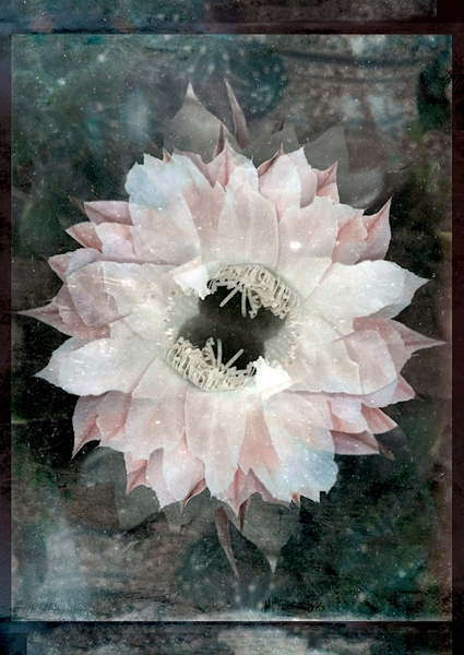 "Ayahuasca" poster by The Fleurs. Dive into the layers of this abstract photography piece, where light and darkness dance around a cactus flower. It’s like a visual meditation, revealing the flower's inner beauty and deeper meanings. The moody greens and blues create a mysterious vibe, inviting contemplation. This artwork isn’t just a decoration; it’s a portal to mindfulness and calm. Perfect for those who appreciate the magic in nature’s details. Bring a touch of the extraordinary into any space.