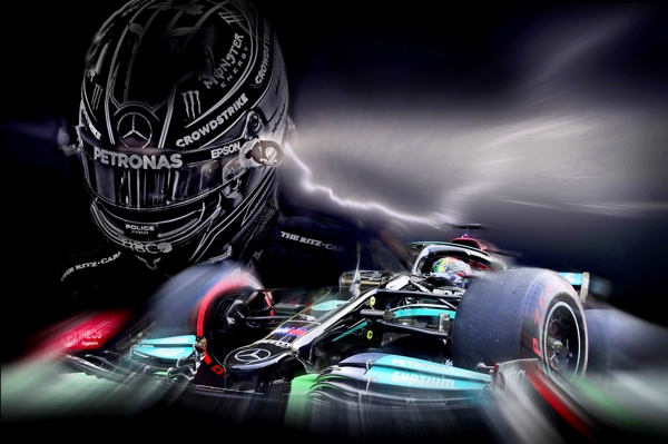 "Lewis Hamilton - F1" poster by DeVerviers. Experience the thrill of the racetrack with this electrifying digital artwork featuring Sir Lewis Hamilton. The dynamic composition captures the essence of speed and precision, showcasing Hamilton's iconic helmet alongside a sleek Mercedes F1 car. Vivid colors and motion blur create an adrenaline-fueled atmosphere, embodying the spirit of Formula 1 racing. Perfect for fans and collectors alike, this piece celebrates Hamilton's legendary status in the world of motorsport. Get ready to rev up your space!