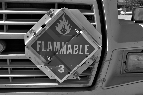 "Flammable" poster by Hanna KH. A vintage truck, parked like it’s seen better days, flaunts a bold “FLAMMABLE” sign right on its grill. The black-and-white vibe adds a retro twist, making it feel like a snapshot from a forgotten era in California. It’s not just a vehicle; it’s a statement piece, whispering stories of the past while hinting at a fiery personality. Perfect for those who appreciate the charm of old-school vehicles with a dash of danger.
