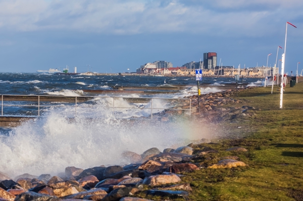 "Storm" poster by Kim Carlson . Experience the raw power of nature with this striking artwork capturing a stormy day at Sibbarp, Malmö. Waves crash fiercely against the rocky shore, sending sprays of water into the air. The dramatic sky, filled with swirling clouds, adds an intense backdrop to the scene. This piece brings the energy of a hurricane right into your living space – perfect for a sitting room or office. Embrace the wild beauty of the sea and let it inspire your everyday life.