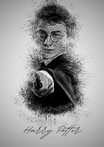 "Harry Potter" poster by Sketch Art. Dive into the enchanting world of wizardry with this striking artwork featuring Harry Potter. The dynamic sketch captures the essence of magic and adventure, showcasing Harry in a moment of spellbinding action. The intricate details create a sense of movement, as if he's about to cast a powerful spell. Perfect for any Potterhead, this piece brings a touch of the wizarding world into your space – a must-have for fans of magic and fantasy!