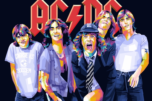 "ACDC Pop Art" poster by Ernando Febrian Putra. This vibrant pop art piece captures the electric energy of AC/DC, the legendary Australian rock band. With bold colors and geometric shapes, the artwork brings to life the iconic members, showcasing their playful spirit and rock 'n' roll attitude. The striking lightning bolt logo adds an edgy flair, making it a must-have for music lovers and pop art enthusiasts alike. Perfect for any space that craves a touch of rock history and artistic flair.