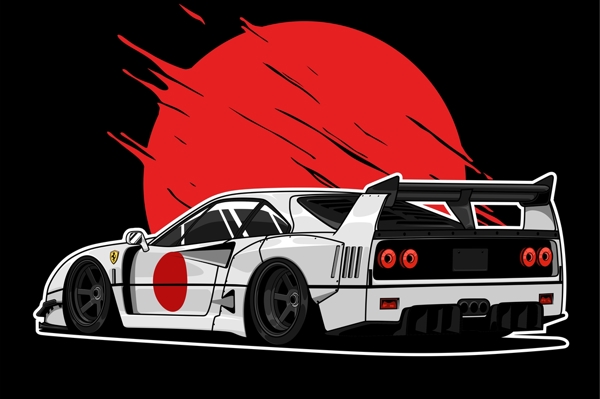 "This is a ferrari F40 car with a super cool bodykit from LBWK (Liberty Walk) with LB Works moder in the form of Vector Illustrations."