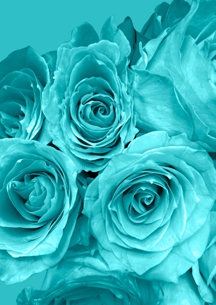 "Floral - Blue Rose Love" poster by Annica Andersson. Dive into a world of vibrant romance with this stunning artwork featuring turquoise roses. The bold, solid hues create a striking visual that speaks of passion and love. Each petal seems to whisper sweet nothings, inviting you to lose yourself in their beauty. Perfect for adding a splash of color to any space, this piece captures the essence of floral elegance with a modern twist. A must-have for anyone who appreciates art that feels alive and full of emotion.