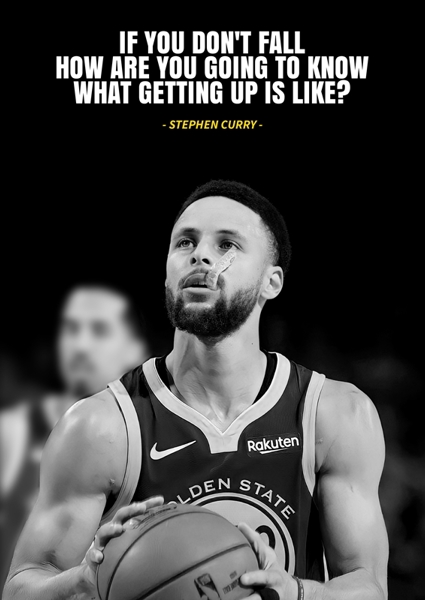 "Stephen Curry quotes " poster by Bao bao Art. This artwork captures the essence of resilience with a striking silhouette of Stephen Curry, paired with his powerful quote. The bold text challenges the viewer to embrace failure as a stepping stone to success. The black and white contrast amplifies the intensity, making it a perfect motivational piece for any space. Ideal for sports enthusiasts and dreamers alike, this illustration serves as a daily reminder that every setback is just a setup for a comeback.