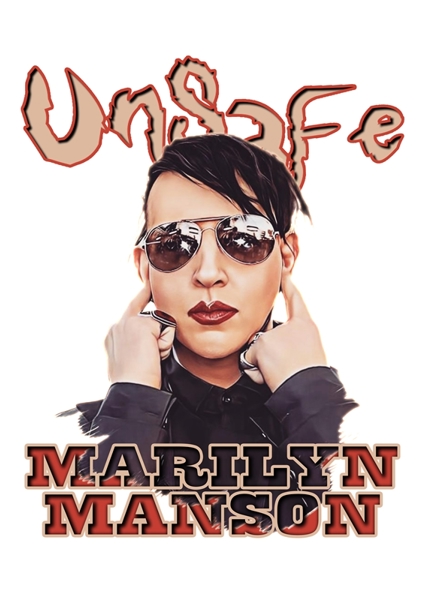 "Musician Marilyn Manson" poster by VIOLATE ⭐⭐⭐⭐⭐. Dive into the edgy world of Marilyn Manson with this striking artwork. Featuring the iconic musician in bold sunglasses and a fierce expression, it captures that unapologetic rock vibe. The retro-inspired design, complete with the word "Unsafe" emblazoned above, screams attitude and rebellion. Perfect for fans of rock culture, this piece is a must-have for anyone looking to add a touch of the unconventional to their collection. Embrace the wild side!