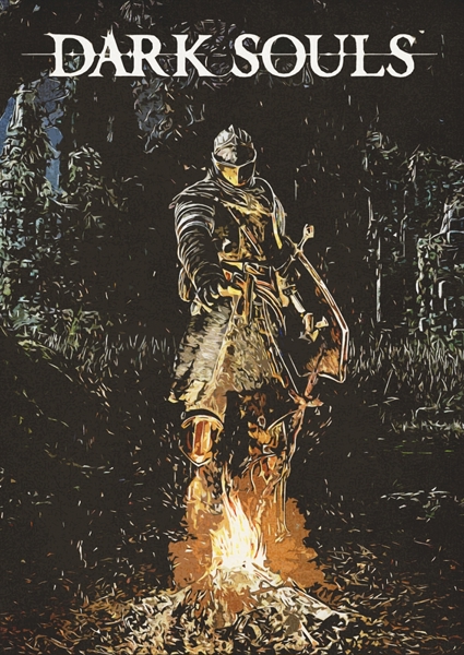 "Dark Souls" poster by Rian setiadi. Dive into the haunting world of Dark Souls with this striking illustration. A lone soldier stands resolute, igniting a bonfire – the ultimate checkpoint in a realm where every step is a battle. The dark, atmospheric backdrop pulls you in, echoing the game’s intense vibe. It’s not just art; it’s a portal to epic quests and relentless challenges. Perfect for gamers and art lovers alike, this piece captures the essence of a legendary saga. Light up your space with a touch of adventure!