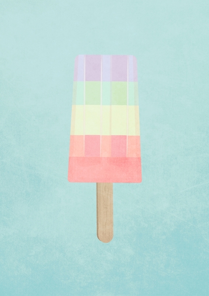 "Popsicle ice in rainbow colors" poster by Puspita Wulandari. A vibrant popsicle pops against a dreamy pastel backdrop, radiating summer vibes. This artwork captures the essence of nostalgia with its playful rainbow stripes – think vintage ice cream truck meets modern minimalism. Each layer whispers sweet refreshment, inviting you to indulge in a burst of color and flavor. Perfect for adding a splash of whimsy to any space, it’s a delightful reminder of carefree days and sunny holidays.