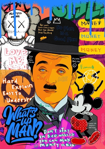 "Comedy " poster by Mildwords. Dive into a vibrant explosion of pop art that’s a total visual feast! This piece fuses graffiti flair with retro vibes, featuring playful silhouettes and cheeky phrases that spark curiosity. Characters like Mickey and iconic figures collide in a kaleidoscope of colors, while witty lines like “No Plan is a Good Plan” and “What’s Up Man?” invite a chuckle. It’s a celebration of culture and comedy, perfect for any wall that needs a splash of personality and a dash of laughter.