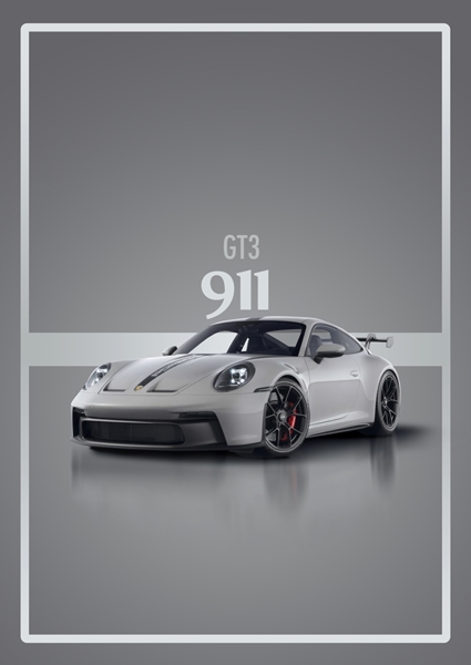 "Porsche 911 GT3 in Crayon" poster by Bouk de Roeck. Experience the thrill of the Porsche 911 GT3, captured in a sleek, minimalist design. This artwork showcases the iconic sports car in a stunning Chalk color, paired with striking black rims. The clean lines and modern aesthetic make it a perfect addition to any automotive enthusiast's collection. Ideal for gifting or elevating your space, this piece radiates speed and sophistication. Bring home the essence of racing with this captivating car wall art.