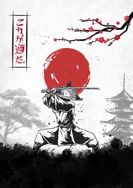 "Samurai Japan" poster by Faissal Thomas. Step into a world where tradition meets bold artistry with this striking piece. Featuring a fierce samurai poised with a katana against a vibrant red sun, it captures the essence of Japanese culture. The ink splashes and cherry blossoms add a dynamic flair, while the kanji text whispers tales of honor. Perfect for those looking to infuse their space with a touch of authenticity and a nod to the timeless warrior spirit. A must-have for any trendsetter!