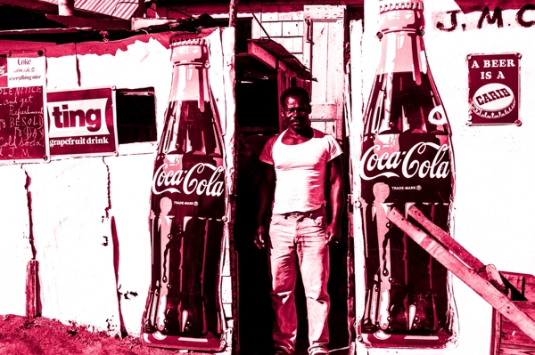 "Saint Kitts, West Indies 1979. A proud cafe owner who was happy to pose for a picture. This is a basically black and white image that has undergone heavy editing, for a more graphic feel."