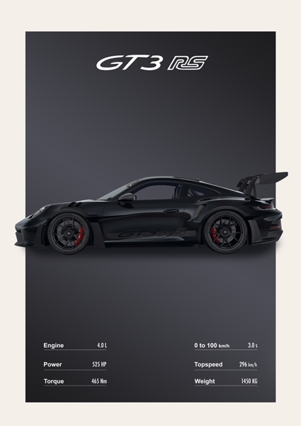 "Black Porsche 911 GT3 RS" poster by Bouk de Roeck.