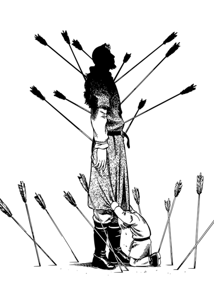 "an important moment depicted on a wall display with a black and white theme / called manga"