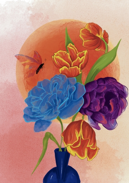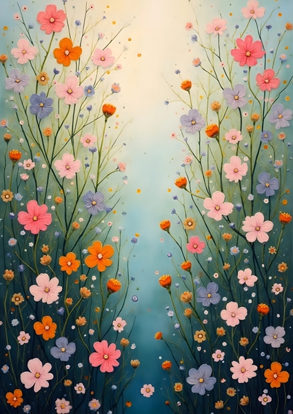 ""Spring"" poster by Annika persson. A vibrant explosion of flowers dances against a dreamy, textured backdrop. This artwork captures the essence of spring – think pastel petals in pinks, yellows, and whites, reaching for the sun. Each bloom tells a story, a mix of sizes and varieties that feels like a garden party. It’s like nature’s own confetti, celebrating color and life. Perfect for adding a splash of joy to any space, this piece is a must-have for flower lovers and art enthusiasts alike.