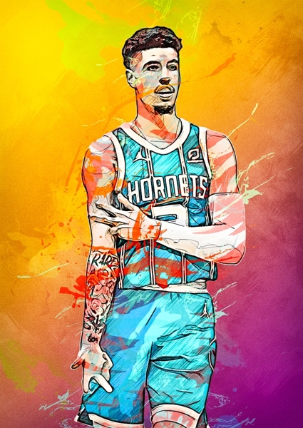 "LaMelo Ball " poster by crystal maxwell. Dive into the vibrant world of basketball with this electrifying artwork featuring LaMelo Ball. The dynamic colors burst forth, capturing the essence of the game and the spirit of the Hornets. With a playful mix of watercolor splashes and bold lines, this piece radiates energy and creativity. It’s not just a painting; it’s a celebration of sport, style, and the fearless attitude of a true all-star. Perfect for any fan looking to elevate their space!