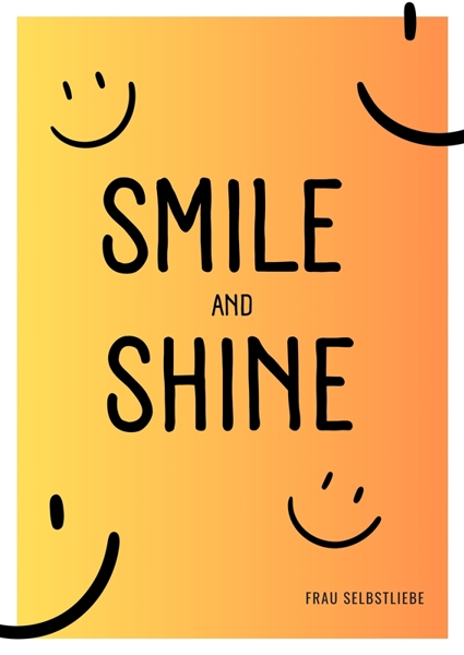 "SMILE & SHINE" poster by Anne. Brighten up any space with this vibrant artwork that screams positivity! Featuring playful smiley faces against a warm gradient background, it’s all about embracing joy and radiating good vibes. The bold text invites everyone to "SMILE & SHINE" – a reminder that beauty comes from within. Perfect for those who want to uplift their surroundings and spread happiness. This piece is a must-have for anyone looking to add a touch of cheer to their decor!