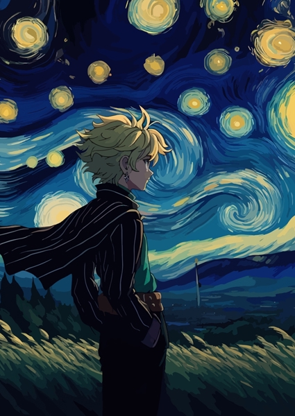 "Kawaragi Senju - Tokyo Revenge" poster by ARMOR. Experience a vibrant fusion of anime and classic art with this stunning illustration featuring Kawaragi Senju from Tokyo Revengers. Set against a swirling starry night sky, the character stands confidently, exuding a sense of adventure and introspection. The bold colors and dynamic lines create an aesthetic that’s both modern and nostalgic. Perfect for fans of anime and art alike, this piece captures the essence of youthful rebellion and dreams, making it a must-have for any collection.