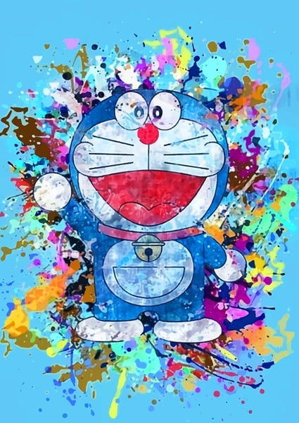 "doraemon" poster by Wulan Nasikhatul Ulya. Dive into the vibrant world of nostalgia with this playful artwork featuring the iconic robot cat, Doraemon. Bursting with color and energy, the splashes of paint create a lively backdrop that perfectly complements Doraemon's cheerful demeanor. This piece captures the essence of childhood adventures and futuristic fun, making it an ideal addition to any kid's room or a quirky space. Brighten up your walls with this joyful tribute to a beloved character that never goes out of style!