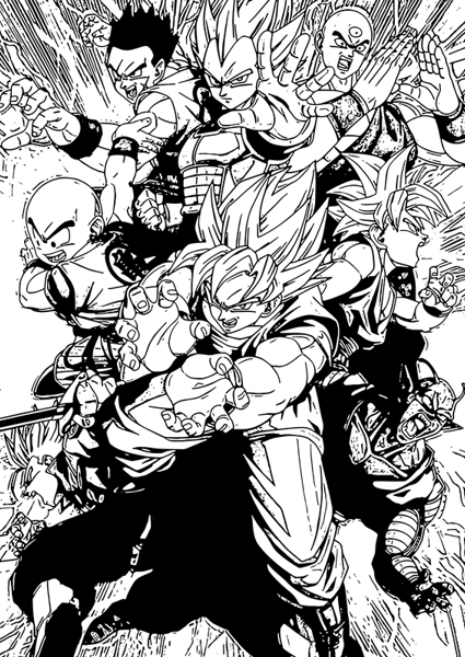 "Dragon Ball Z Manga Art" poster by Justinus 57. Dive into the action-packed world of Dragon Ball Z with this vibrant manga art piece. Featuring Goku and his iconic friends, each character bursts with energy and personality, captured in their unique styles. The dynamic poses and explosive backgrounds create a sense of movement that pulls you right into the adventure. Perfect for anime lovers and collectors alike, this artwork is a bold statement piece that celebrates the thrill of friendship and heroism in a fantastical universe.