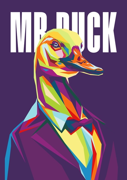 "Mr Duck Pop Art" poster by Colorize Studio. Dive into the vibrant world of Mr Duck – a pop art masterpiece that’s all about playful charm. This colorful illustration features a dapper duck, complete with a bow tie, radiating personality and humor. The bold geometric shapes and striking colors create a visual feast that’s impossible to ignore. Perfect for adding a splash of fun to any space, this artwork is a delightful nod to the whimsical side of life. Embrace the quirkiness!