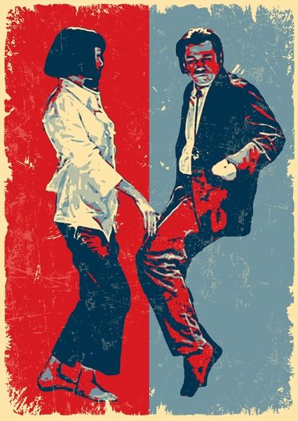 "pulp fiction dance" poster by yunur mawan. This artwork captures the iconic dance scene from "Pulp Fiction" with a retro twist – think vintage vibes mixed with a splash of wear and tear. The bold colors pop against a distressed backdrop, giving it that edgy, nostalgic feel. It’s all about movement and joy, channeling the carefree spirit of Mia Wallace and Vincent Vega. Perfect for fans of film and art, this piece brings a playful, cinematic energy to any space.