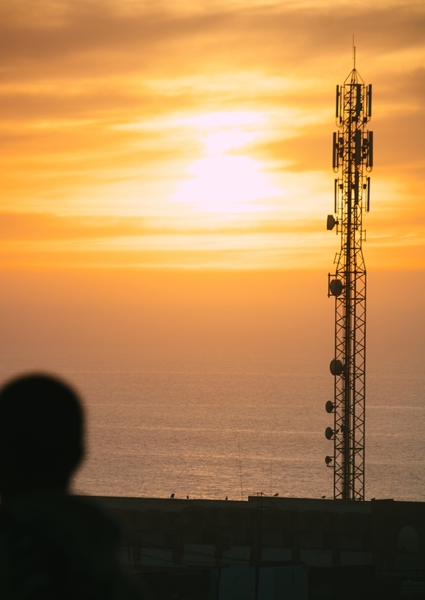 "This picture was taken during a stunning sunset, where the silhouette of a transmission mast stands out against the glowing sky. The contrast between technology and the natural beauty of the sky invites us to reflect on the connections between humans, nature, and progress."