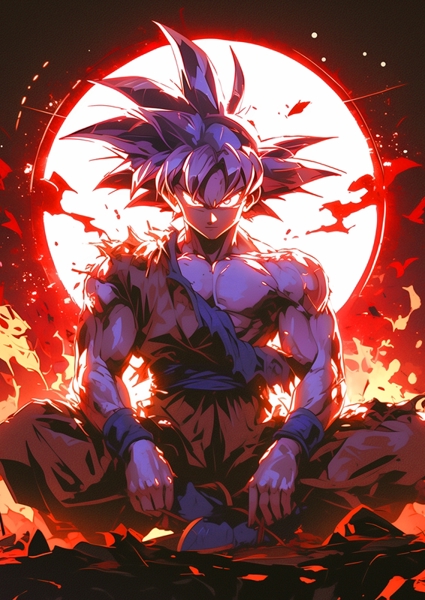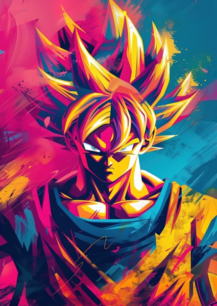 "GOKU SUPER SAIYAN" poster by MAX MOEN . Dive into the vibrant world of anime with this stunning Goku Super Saiyan art print by Max Moen. Featuring a striking mosaic design, the artwork captures Goku's fierce determination and iconic spiky hair in a burst of fiery colors. Perfect for any Dragon Ball Z fan, this piece adds a dynamic touch to personal spaces. Available as a poster or framed fine art print, it’s a must-have for collectors and enthusiasts alike. Transform your wall into a canvas of action and nostalgia!