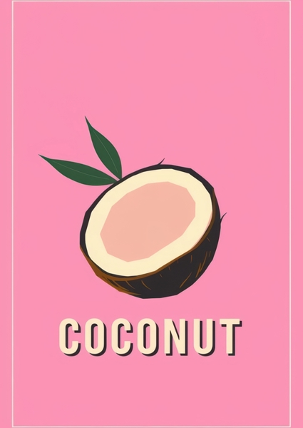 "Embrace the vibrant charm of this retro-modernist artwork featuring a stylized coconut set against a bold pink background. The minimalistic design and clean lines evoke a mid-century modern aesthetic, making it a perfect statement piece for contemporary interiors."