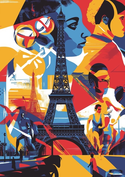 "Paris Olympics 2024 " poster by Lae. Dive into the vibrant energy of the Paris Olympics 2024 with this striking art print. Featuring bold colors and dynamic figures, it captures the spirit of competition against the iconic backdrop of the Eiffel Tower. This artwork is a celebration of sport, culture, and the thrill of the games – perfect for adding a splash of excitement to any space. Available in various sizes, it’s a must-have for sports enthusiasts and art lovers alike.