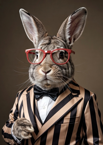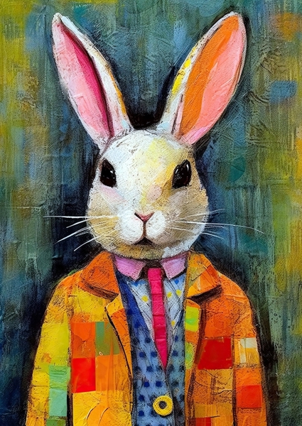 "Fortune Rabbit" poster by L van Moerkerken. This artwork captures a cool, laid-back rabbit, rocking those shades like it’s no big deal. With a nod to the Year of the Rabbit, it’s got that playful vibe perfect for a children’s room or a birthday bash. The bold colors and funky patterns scream fun, while the tattoo-like designs add a twist of edge. It’s all about happiness and fortune – just like a fortune cookie, but way cooler. Perfect for anyone looking to add a splash of joy and style!