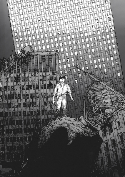 "iconic scene from akira manga with the destruction of neo tokyo"