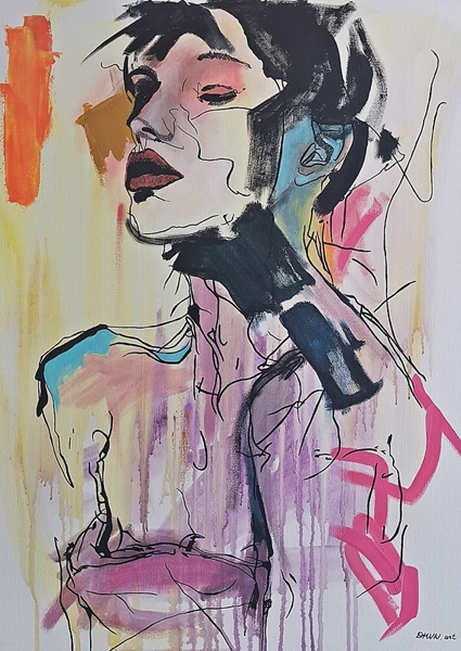 "This artwork captures the essence of confident femininity through bold, expressive lines and a minimalistic color palette. Ideal for contemporary interiors, it adds a touch of modern elegance to living rooms or art-centric spaces, seamlessly blending with trendy design styles."