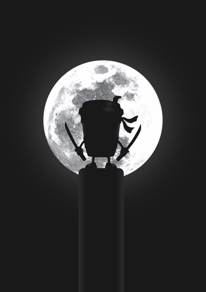 "cappucino assassino moon" poster by M Alif. Meet the Cappuccino Assassino – a quirky blend of caffeine and ninja vibes. Picture this: a to-go coffee cup, eyes wide open, decked out in a Hidden Leaf Village headband, ready for action. Those katanas? Totally ready to slice through your morning routine. Set against a full moon backdrop, this artwork captures a playful yet fierce spirit. It's a meme-worthy masterpiece that screams late-night coffee runs and ninja dreams. Perfect for anyone who loves a dash of humor with their brew!