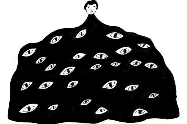 "Eyedress" poster by Hanna Larsdotter Lindgren. An intriguing illustration that pulls you in with its overwhelming presence. Picture a figure draped in a flowing dress made entirely of watchful eyes – it’s like a fashion statement from a surreal dream. The stark contrast of black and white amplifies the intensity, making each eye pop with curiosity. It’s a playful yet haunting exploration of perception and observation, inviting viewers to ponder what lies beneath the surface. Perfect for those who appreciate art that challenges the norm and sparks conversation.