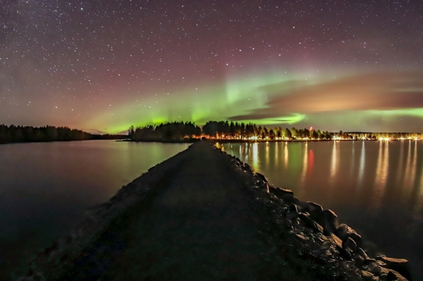 "Norrsken över Byske" poster by Jimmy Vikström. Go for an evening walk to photograph the sea bath in the dark. Luckily, there was also a beautiful northern lights that I went out on the pier to catch.