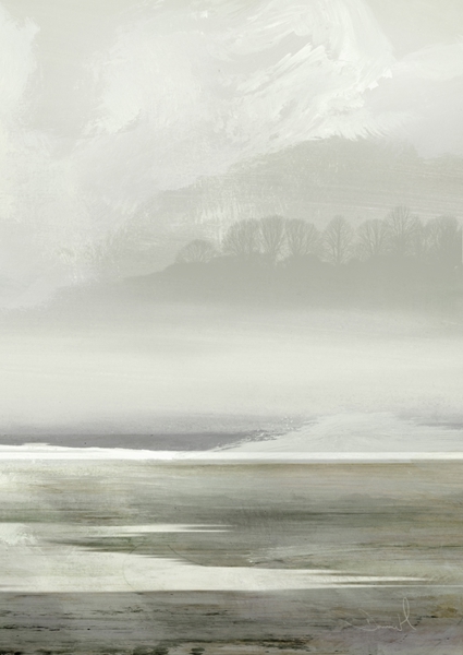 "Misty lake" poster by Christina Sillén. Gentle waves dance across a misty lake, wrapped in a dreamy embrace of soft beige and gray. This minimalist abstract piece captures the ethereal beauty of fog settling over water, creating a serene atmosphere. The blurred lines evoke a sense of tranquility, inviting viewers to lose themselves in its calming depths. Perfect for adding a touch of modern elegance to any space, this artwork whispers of nature's quiet moments and the magic of stillness.