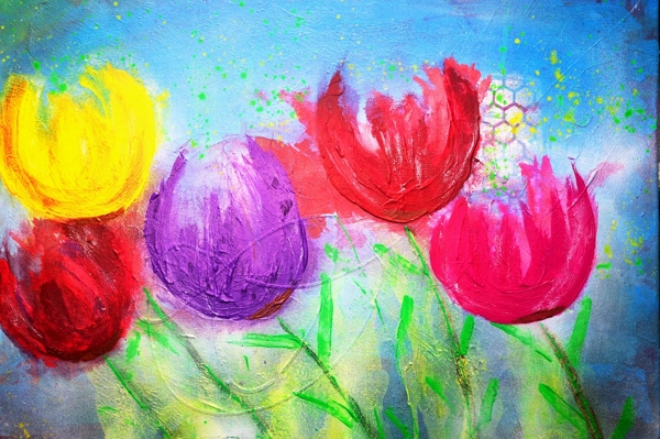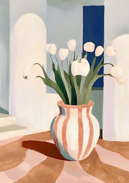 "Tulips under Water" poster by Steffen Gierok. Experience a vibrant dance of colors with this stunning still life artwork. Tulips emerge gracefully from a swirling underwater realm, their delicate petals kissed by acrylic hues of blue and purple. The ethereal quality captures the essence of spring blossoms, creating a dreamy atmosphere that feels both modern and timeless. Perfect for adding a splash of color and intrigue to any space, this piece invites viewers to dive into its captivating depths.