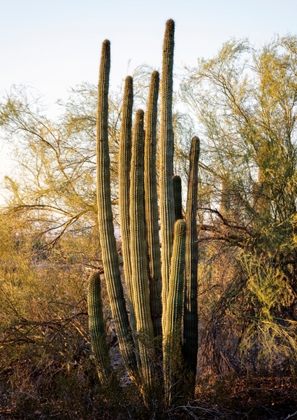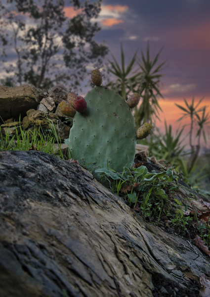"Cactus with some morning sun and pink hues."