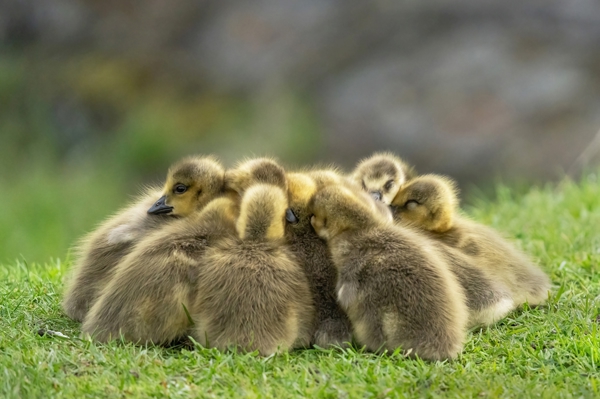 "Morning meeting in nature" poster by Allan Wallberg. A cozy gathering of fluffy goslings huddles together on a vibrant green lawn, embodying the essence of community and warmth. Their soft, downy feathers create a delightful contrast against the lush backdrop, capturing a serene morning moment in nature. This artwork radiates a sense of innocence and togetherness, inviting viewers to appreciate the simple joys of life. Perfect for nature lovers and those seeking a touch of whimsy in their space.