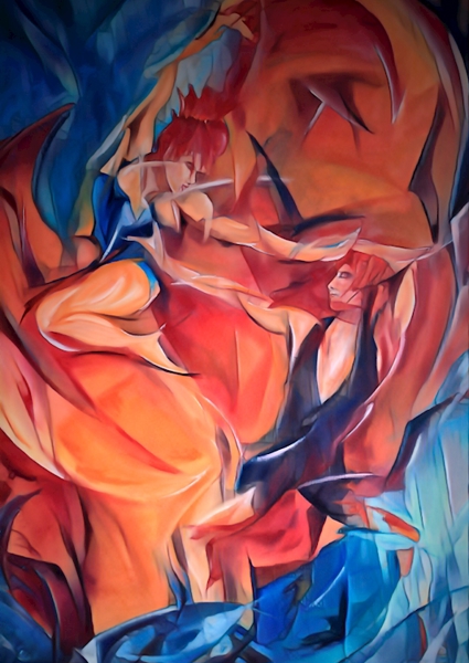 "Ballet " poster by Harald Spietz. A vibrant explosion of color captures the essence of dance in this modern artwork. The dynamic figures, a man and a woman, intertwine in a passionate ballet, their forms fragmented yet fluid—like a moment frozen in time. Cubist influences add depth, creating a visual rhythm that echoes the heartbeat of the performance. This piece is not just a depiction; it’s a story told through movement and emotion, inviting viewers to lose themselves in the dance.